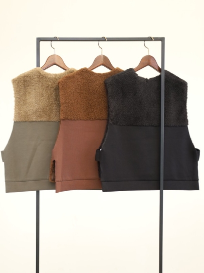 メインのベストはボアと柔らかいポンチを切り替えたショートベストです。