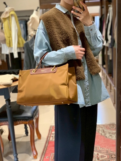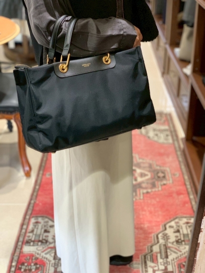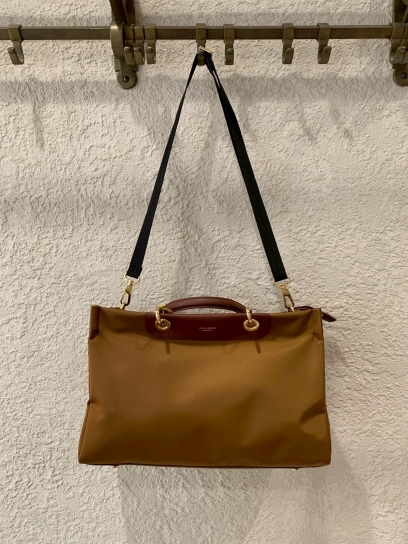 ナイロン素材にイタリアンレザーがアクセントになったA4トートバッグ。