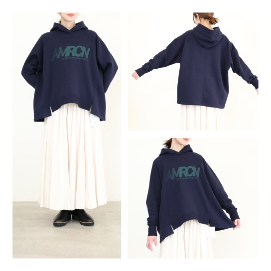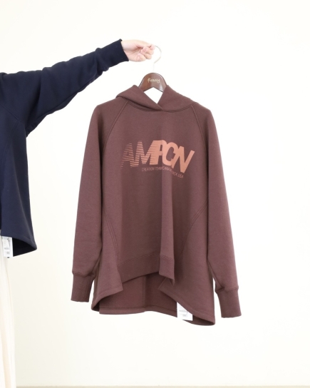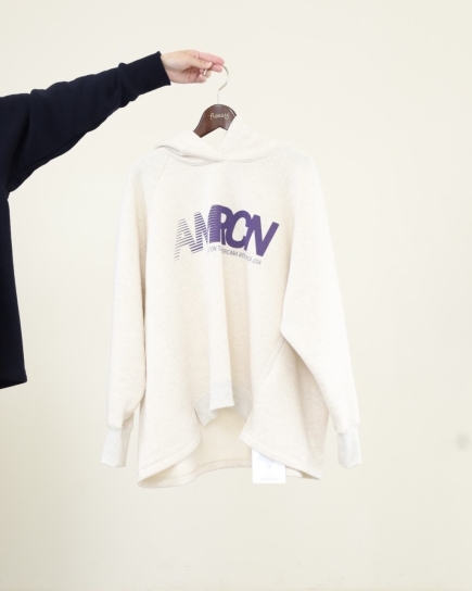 スポーティなロゴが目を惹くラグランスリーブパーカー。
