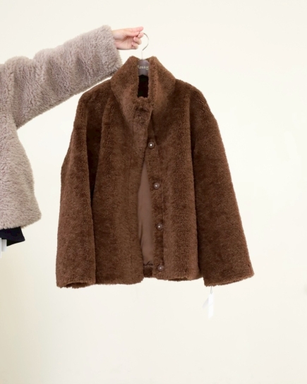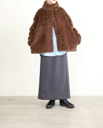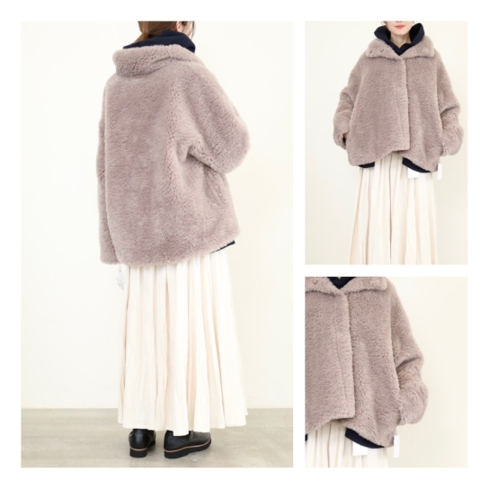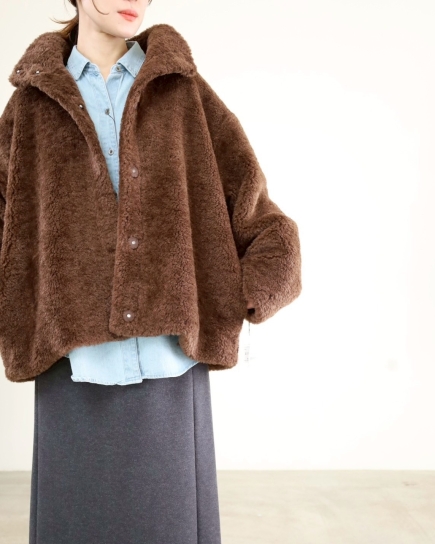 肌触りが滑らか艶やかなフェイクファーを使用したボアブルゾン。