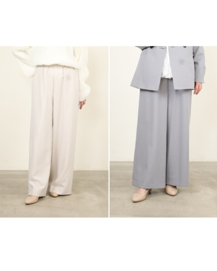 セレモニーだけでなく、通勤やデイリーにも活躍する大人のためのきれいめワイドパンツです。